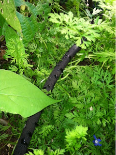 I also watered all the pots and then moved them close together in hopes that they can't possibly be missed when Mark waters Monday night. Included in the potted category are the new seedlings (kale, chard, and leeks) for this fall-winter garden.
